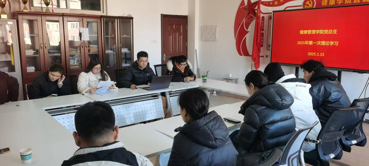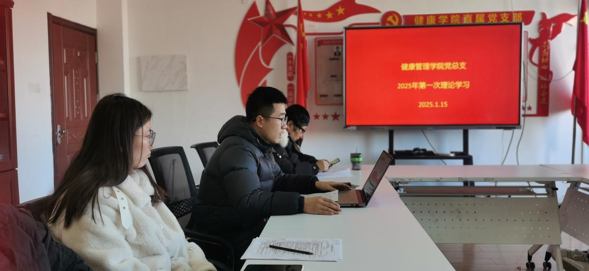 为深入学习贯彻党的二十届三中全会精神、习近平总书记视察山东重要讲话精神,巩固深化党纪学习教育成果,充分发挥党政领导班子的核心作用,健康管理学院党总支于2025年1月5日下午在A8-513党建活动办公室组织开展了第一次政治理论学习。会议由党总支书记王婧主持。