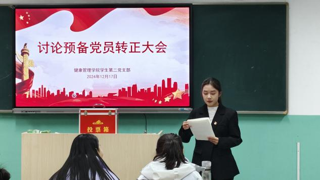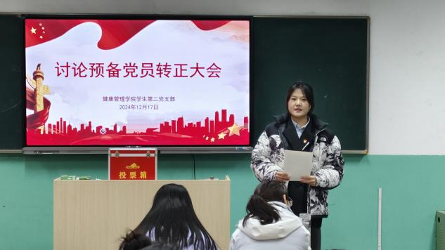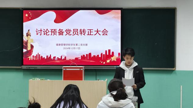 为进一步强化了党员队伍建设,为党支部注入了新的活力,激励全体党员在新时代新征程中展现新作为、作出新贡献。健康管理学院学生第二党支部于2024年12月17日15:30-16:30在传习楼A8-603举行讨论预备党员转正大会。