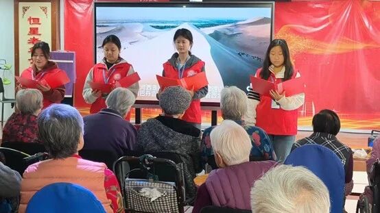 活动中,志愿者们不仅以PPT形式科普中医养生知识,讲解中老年“阴阳失衡”的调理要点,还以“千年医韵”为核心,讲述张仲景发明“娇耳”(饺子原型)救治百姓的历史故事;同时带来集体朗诵《文明长河》,回溯中华五千年文明脉络。《好运来》欢快的旋律搭配喜庆的演唱风格,瞬间点燃了现场热情。
