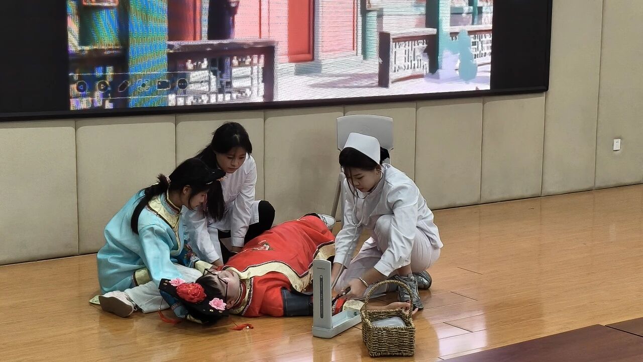 我院科技健康创意社采用“影视演绎+知识科普”的形式,在科技节上倾情呈现原创情景短剧《甄嬛传之后宫急诊记》,将《甄嬛传》中经典人物与“急诊”趣味设定相结合,既保留了原作的人物神韵,又融入了校园生活的幽默元素,打破了传统急救知识学习的枯燥感,充分体现了科技健康创意社“以创意为桥,传实用知识”的活动理念。
