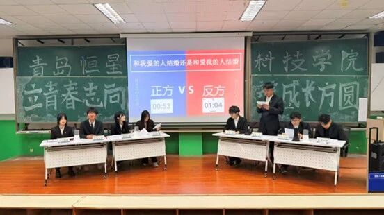 此外,另外两个贴近生活、兼具思辨性的辩题——“和我爱的人结婚还是和爱我的人结婚”以及“网络言论自由的底线该优先保证他人权益还是坚守法律条文”辩论中同样引发了辩手们的热烈探讨。在这些关乎情感抉择与权利边界的话题中,双方辩手以条理清晰的立论、直指关键的驳论,展开了层层深入的分析,让辩论不仅是辩手智力的博弈,更成为大家对日常生活与公共议题的生动反思。