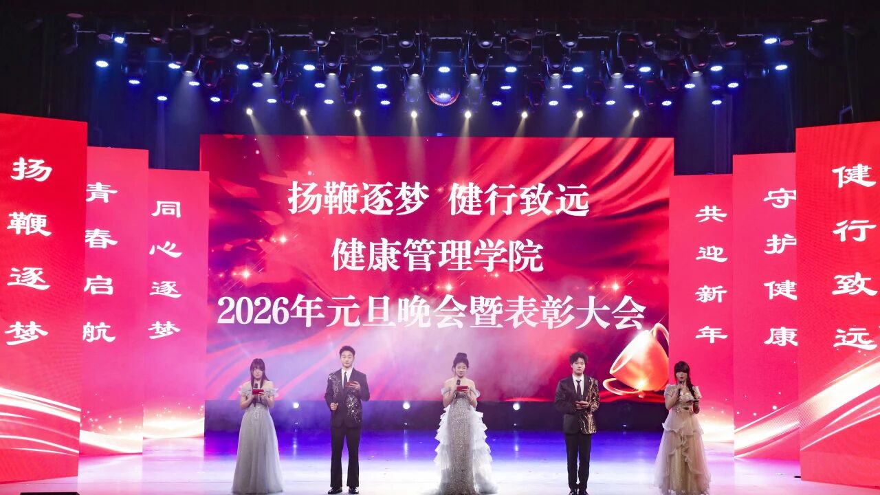 此次元旦晚会暨表彰大会,既是健康管理学院对2025年发展的回顾与总结,也是对2026年新征程的展望与开启。表彰先进的环节凝聚起全院奋进的力量,文艺表演则尽显青春风采,让大家在欢声笑语中凝聚共识、增进情谊。未来,健康管理学院将继续秉持“扬鞭逐梦,健行致远”的信念,在人才培养、学科建设的道路上稳步前行,书写学院发展的崭新篇章。