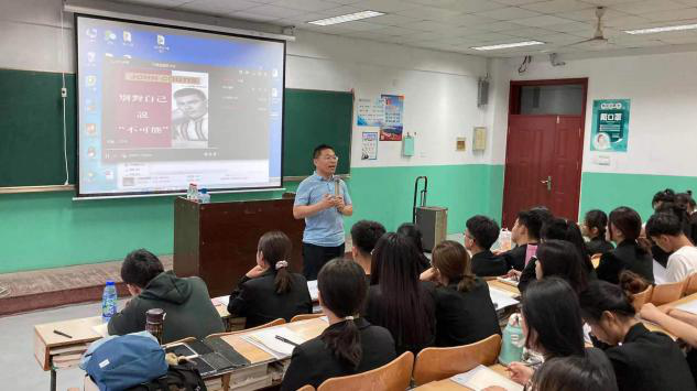 贾健处长从约翰·康缇斯的励志经历切入,与学生进行互动,对学生的感悟进行评析,引出学习的两种心态——“空杯心态,虚心学习;打开瓶盖,自主学习”讲解自我价值的提升,鼓励学生积极动脑。贾处长介绍成长认知链“学习改变观念,观念引导行为,行为导致习惯,习惯决定命运”,深入浅出地阐明个人学习积极性的重要性。通过分析大学现实状况、优秀行为礼仪、正确学习目标、成功金三角、个人能力等各项因素,剖析优秀面试者的共性,结合具体事例,传授面试技能,指导学生做好职业规划,使学生对自身发展有更深刻的思考。