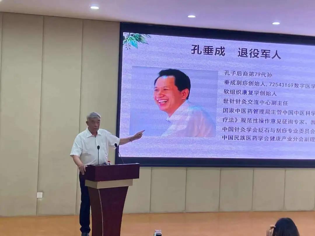 首先,由我院张学俊院长致欢迎辞,并对孔垂成教授做介绍。孔垂成1969年出生于河北省沧州市,1990年退伍回乡开始刮痧事业,已积累26年的刮痧经验,获得多项社会殊荣,是中国中医科学院《刮痧疗法》规范性操作意见征询专家教授,世界针灸学会联合会、世针针灸交流中心副主任,中国针灸学会、砭石与刮痧专业委员会常务委员,宣蛰人软组织外科学医学会常务理事,河北省中医药学会治未病专业委员会常务委员,国家中医药行业特有工种《中医刮痧师》职业技能鉴定专家,国家人力资源和社会保障部《保健刮痧师》职业技能鉴定专家。同时兼任河北省垂成职业培训学校名誉校长,河北垂成教育集团董事会名誉顾问。