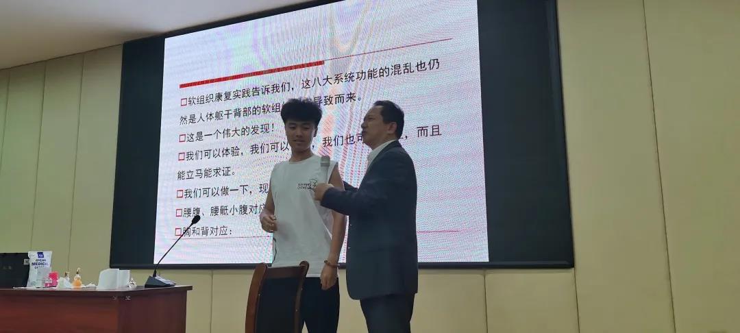 上传时间:为进一步打造健康学院特色优势,增强健康学子的专业竞争力,使同学们能够深刻地学习中医刮痧技术,掌握一门实用的中医技法,2021年6月18日下午,我院特邀河北省垂成职业培训学校孔垂成教授于A8-110作中医刮痧技术现场教学讲座。健康学院院长张学俊、副院长王婧及全体师生到场聆听。