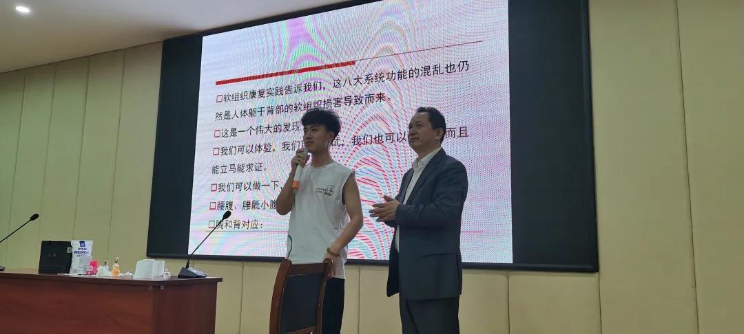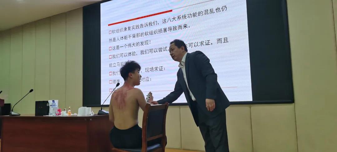 孔教授用深入浅出、通俗易懂和生动活泼的讲课方式,从阴阳、脏腑、五行、穴位到软组织养护等对人体健康的作用,通过身体穴位痛觉传导和各种临床案例分析告诉大家要做到“自己的健康自己维护,学医要学以致用”,现场聆听学习的同学们兴趣高涨,纷纷表示有意愿深入学习了解中医刮痧技术。