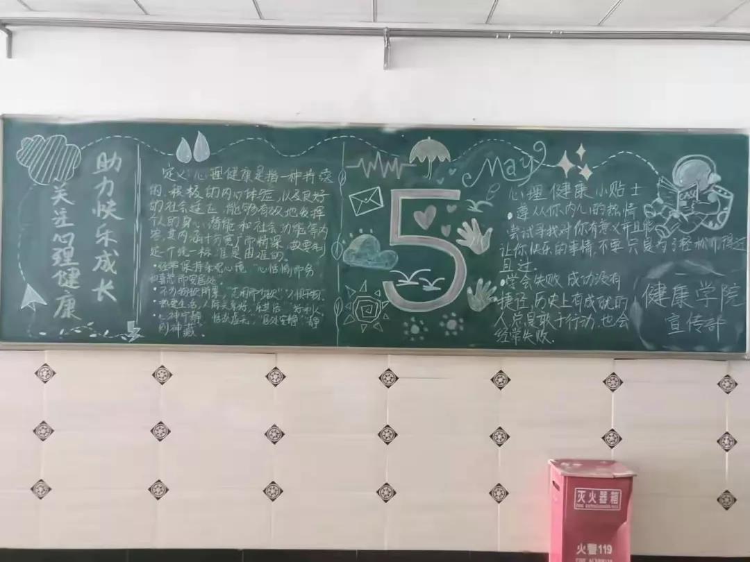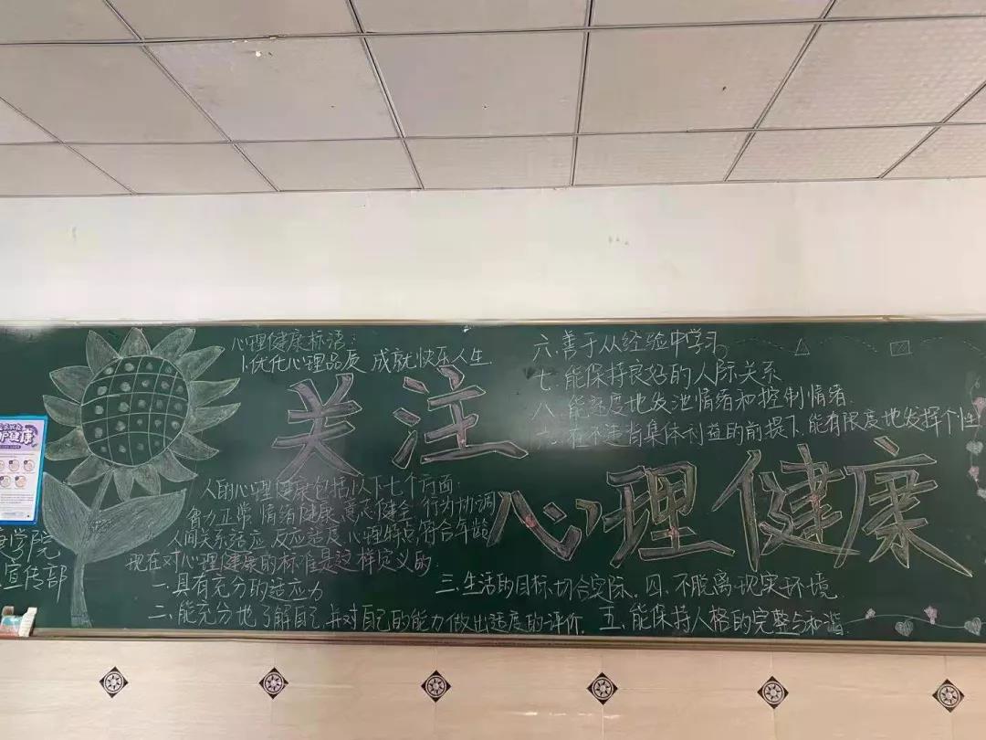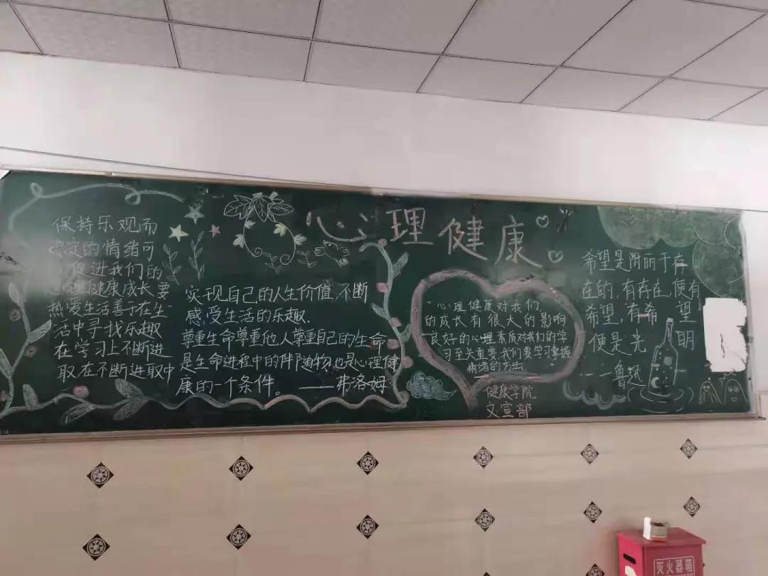 心理健康的重视应该要贯彻到全方位,针对“心理健康月”的展开,宣传部和文宣部对我院的黑板报进行了相关内容的宣传,补充了心理健康的相关知识,从身边带动起同学们对心理健康的兴趣,从而加强对心理健康知识的了解。