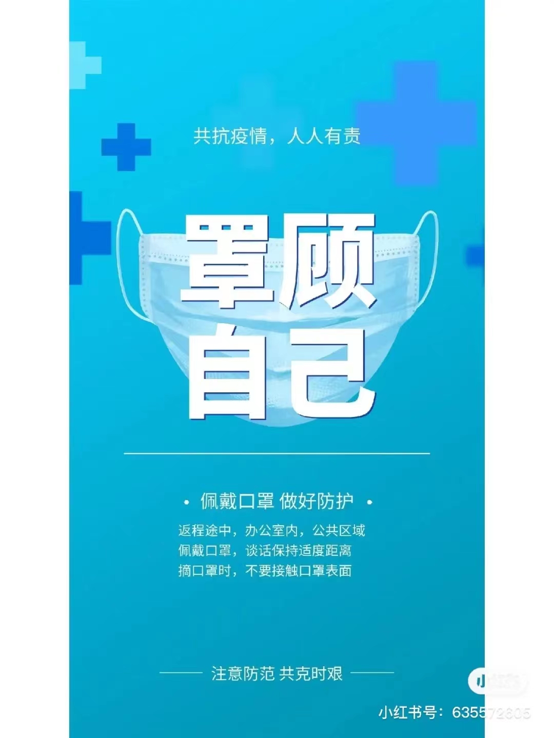 要做好个人防护,不能麻痹大意。新冠病毒无孔不入,看不见摸不到。所以只有做好防护才能相对安全。养成随身携带口罩、科学规范佩戴口罩、勤洗手、常通风、保持安全社交距离的卫生习惯,养成健康生活方式。请尽量不组织、不参加聚餐等聚集性活动,日常就餐时倡导使用公勺、公筷;避免在密闭或通风条件不良的场所活动。