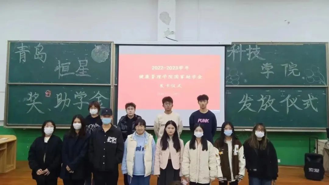为了贯彻落实国家设立奖助学金的意义,更好的搭建大学生奖助学金感恩教育体系,2022年11月25日,青岛恒星科技学院健康管理学院在传习楼A8-510教室举办了2022-2023学年国家奖助学金发卡仪式。参加此次活动的有获得国家助学金、国家励志奖学金的学生,还有学院各班辅导员老师。
