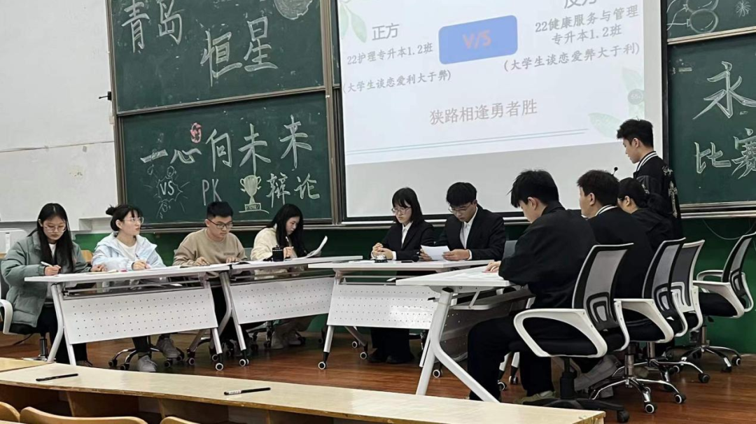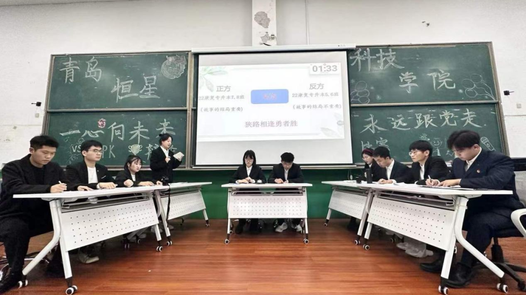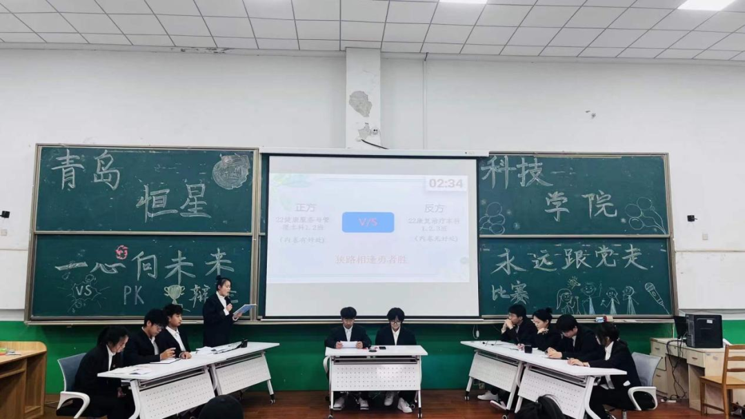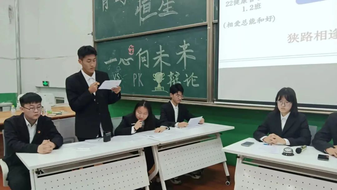 为了丰富课余时间,培养团队精神,锻炼思维表达的能力,增强学生的明辨是非能力和逻辑思维能力,提高学生的辩论水平,使同学们更好的融入大学生活。青岛恒星科技学院健康管理学院于2022年11月21日到22日在传习楼A8—510举办了以“一心向未来,永远跟党走”为主题的辩论赛。此次比赛到场嘉宾有健康管理学院党总支副书记杨敬松以及辅导员江梦慧老师。