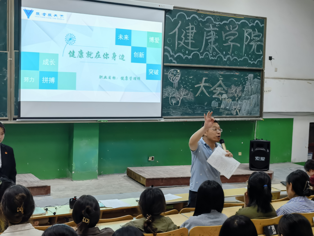紧接着由张彬艳同学从自我认知,职业认知,职业决策,计划与路径,自我监控五个方面讲解团队作品《健康就在你身边》,言辞流利地阐述了对健康管理师这一职业的认知及如何成为一名卓越的健康管理师。