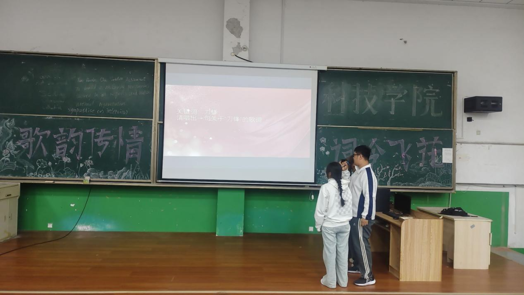 本次活动以“关键词接歌词”为核心形式,现场通过投影展示的关键词,参与者需快速唱出包含该关键词的歌词,考验反应力与音乐储备。活动过程中,同学们踊跃抢答,从经典老歌到流行热曲,不同风格的歌词接连涌现。