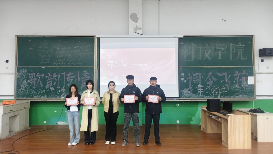 此次“歌韵传情,词令飞花”——歌词飞花令挑战赛通过将诗词与喜闻乐见的歌曲结合,让传统文化走出书本、融入生活,不仅激发了我院同学对诗词的兴趣,更让大家在歌声与词令中感受语言之美、文化之韵。未来,我院将继续推出更多创新性文化活动,让中华优秀传统文化在新时代焕发出更鲜活的生命力。