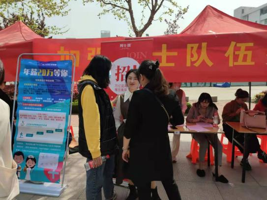 为进一步做好2021届毕业生就业工作,给毕业生提供更多的就业岗位和就业机会,2021年4月25日,青岛恒星科技学院健康学院在恒星大道举办2021届毕业生专场招聘会。我院院长张学俊、副院长王婧、副院长钱同新、行业院长于萌萌、行业主任薛乐平莅临招聘会现场指导,与企业负责人及应届毕业生现场交流。