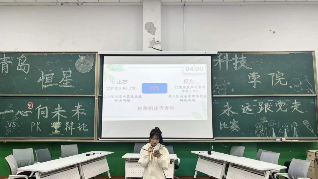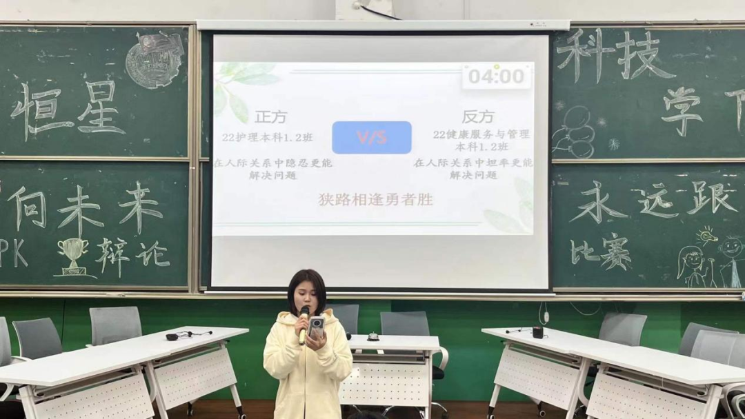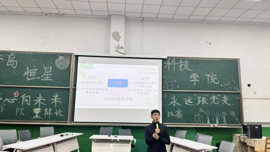 为了丰富课余时间,培养团队精神,锻炼同学们的思维表达能力。2021年11月23日“一心向未来,永远跟党走”为主题的辩论赛复赛在传习楼A8-510教室如期举行。此次比赛到场嘉宾有健康管理学院党总支副书记杨敬松以及各辅导员。
