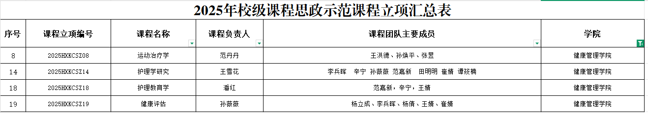 课程思政通过将思想政治教育全面渗透到教学全过程,成为推动知识传授与价值引领同向同行的重要抓手,能够为培养健康中国建设所需的专业人才厚植精神沃土。健康管理学院此次四门课程的成功立项,正是学院深耕课程思政建设、积极探索“专业+思政”融合发展模式的鲜活范例。