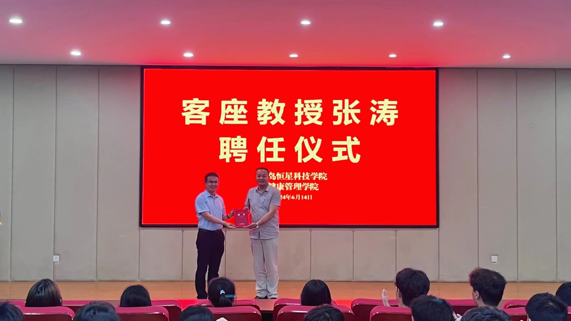 在讲座开始之前,青岛恒星科技学院校长助理、健康管理学院执行院长史春猛院长进行张涛教授的聘任仪式。