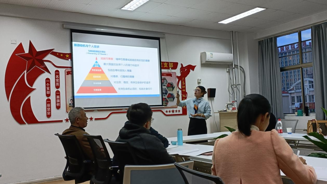 山东省青年教师教学比赛一等奖获得者姜文琼教授带来了一场以“决定个人旅游需求的主观因素”为主题的教师示范课,姜老师从旅游动机与需要、旅游动机基本类型、旅游动机影响因素三方面进行讲解。整节课,问题设计针对性强,层次分明,安排合理流畅,获得了老师们一致的称赞。