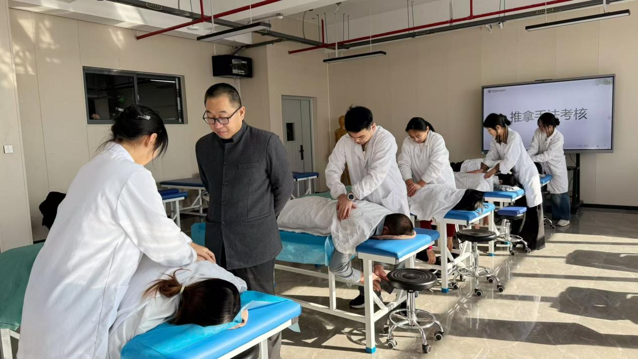为检验学生对推拿按摩实践技能的掌握程度,激发学生的学习热情,近日,健康管理行业学院在平度科学城H3-920教室组织了中医康复专业推拿按摩期末考核。本次考核由岳成斌院长担任主考,中医康复专业全体专任教师沟通参与。23级中医康复技术专业全体同学参加考核。