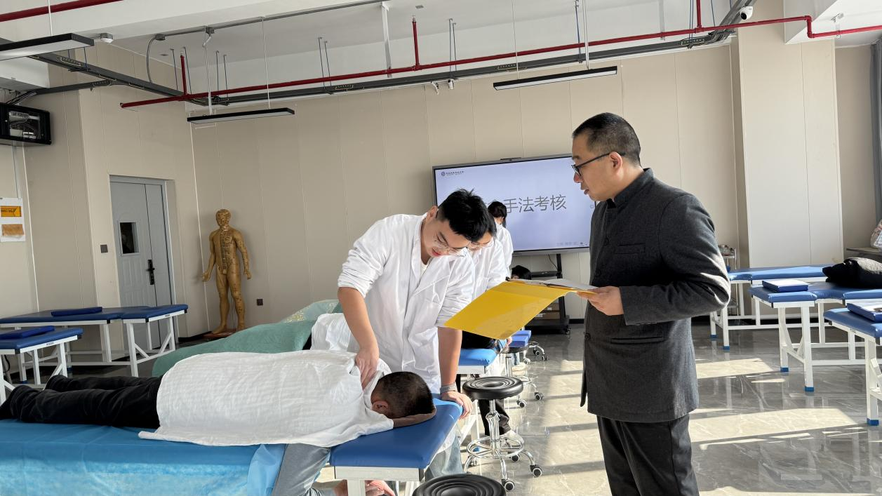 监考教师们认真负责,严格按照考核标准,从手法规范、力度掌握、穴位精准度以及整体推拿效果等多方面进行细致评估打分,并及时给予学生指导与建议,帮助他们认识不足、明确改进方向。