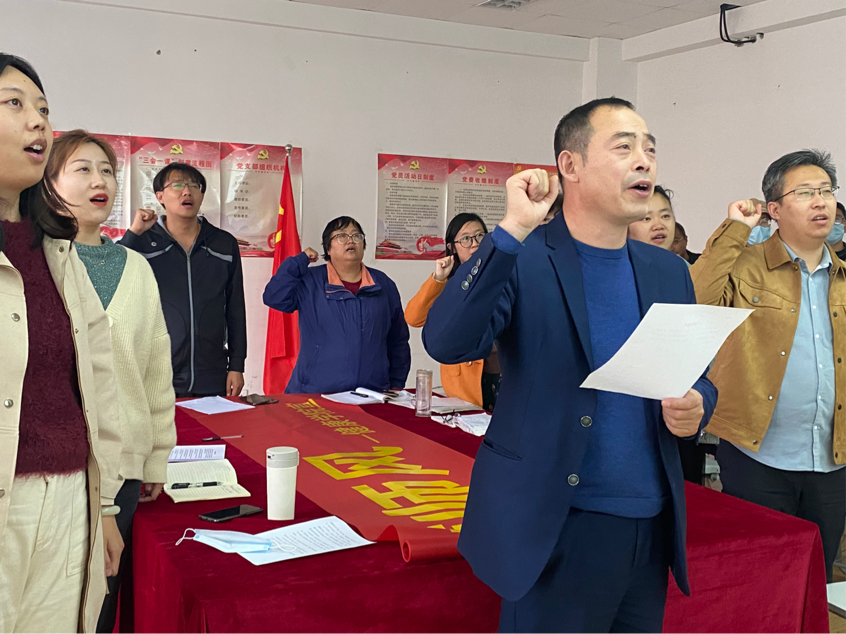 活动进行第三项,由副书记钱同新同志带领全体党员及教职工庄严宣誓。在宣誓时,全体教师油然而生一种教师职业的荣誉感、自豪感和责任感。