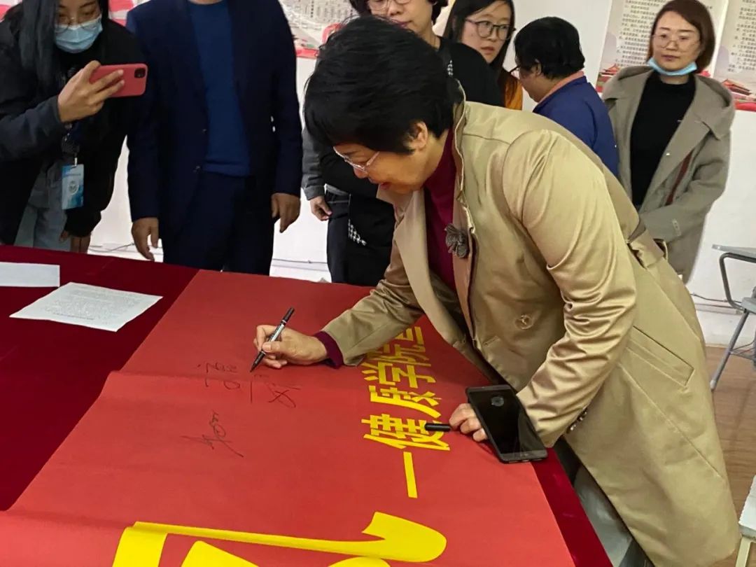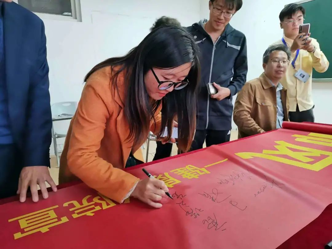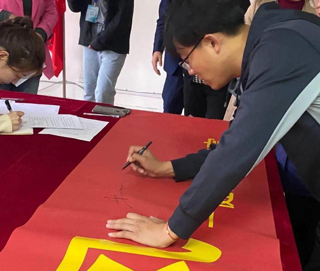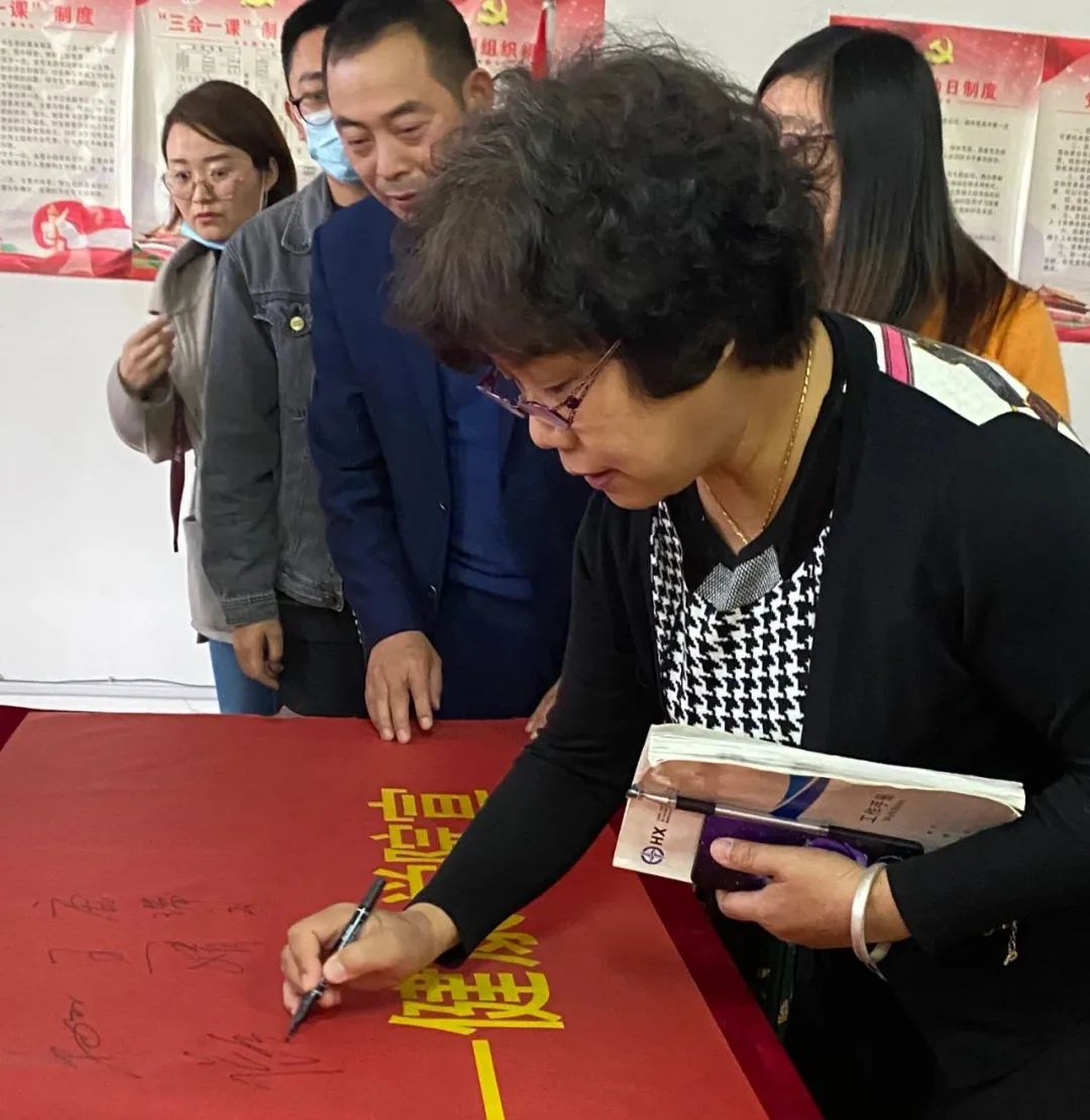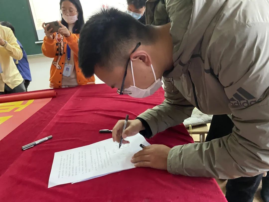 第四项,全体党员及教师在“牢记初心使命,践行师德师风”横幅和师德师风承诺书上签字留名。一撇一捺书写的不仅是教师的身份,更是身为教师应当承担的责任和使命。