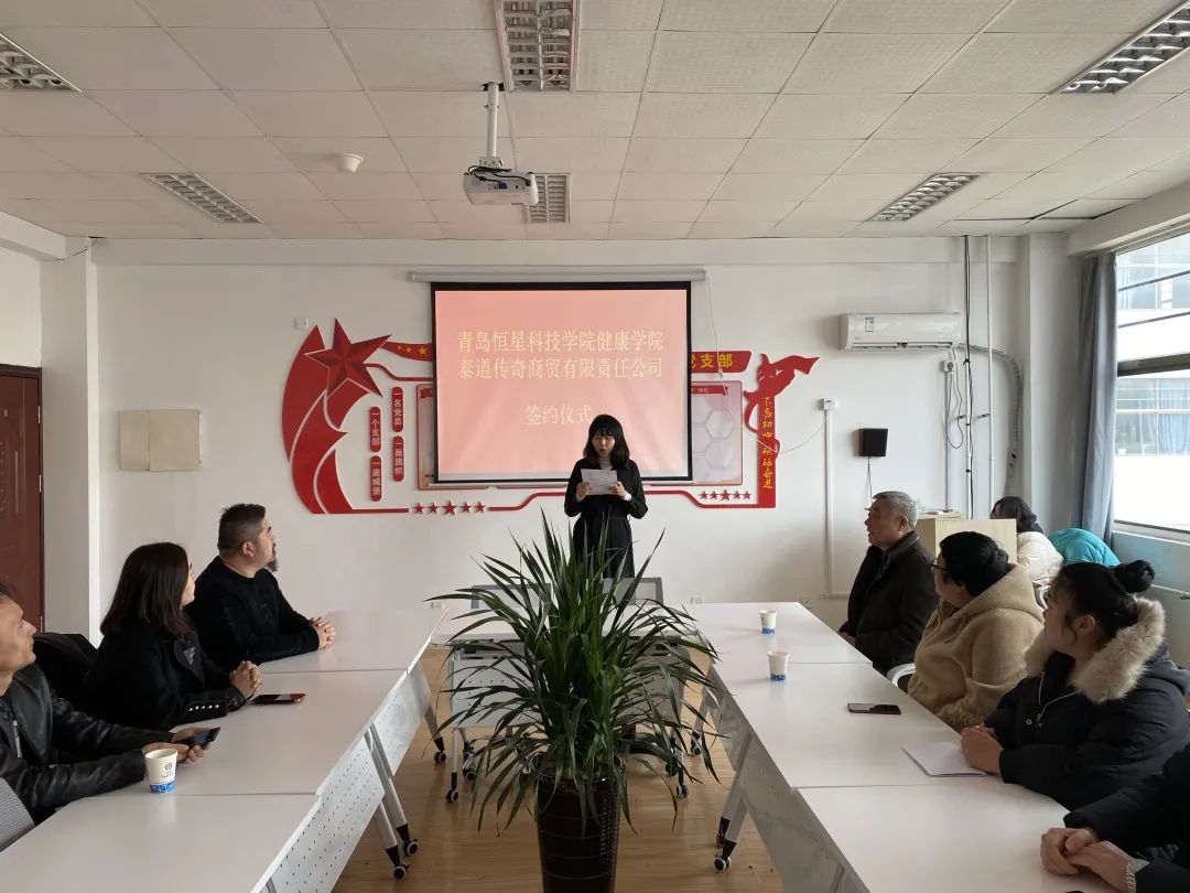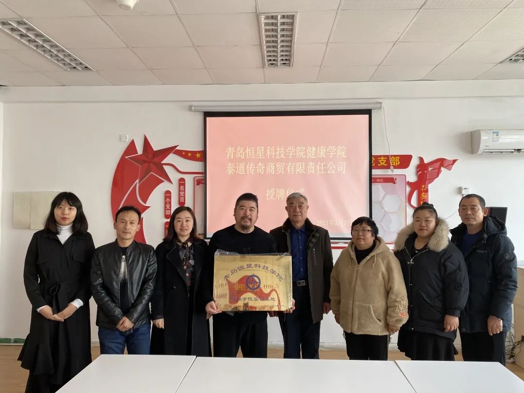 上传时间:为加强校企合作交流,深化产教融合,做好实岗实训,实习就业工作,2021年3月3日,青岛恒星科技学院健康学院与泰道传奇商贸有限责任公司在A8育才楼-513举行签约暨授牌仪式。