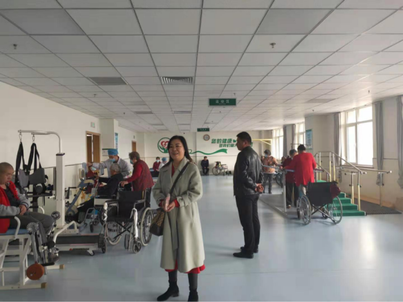 健康学院领导在医院护士长的带领下,参观了康复训练室、活动中心、长护评定室、抢救室等科室,其发展规模和运营模式给我院领导留下深刻印象,进一步坚定了深度合作意向。