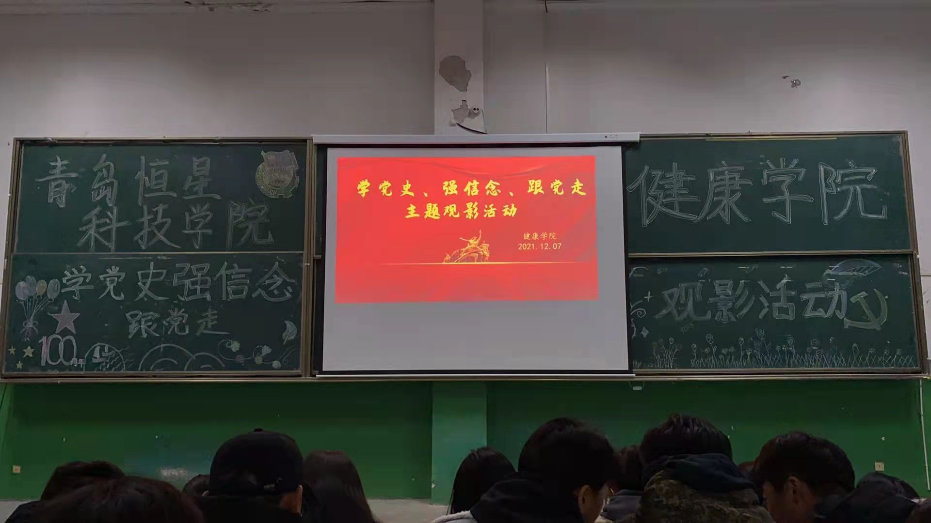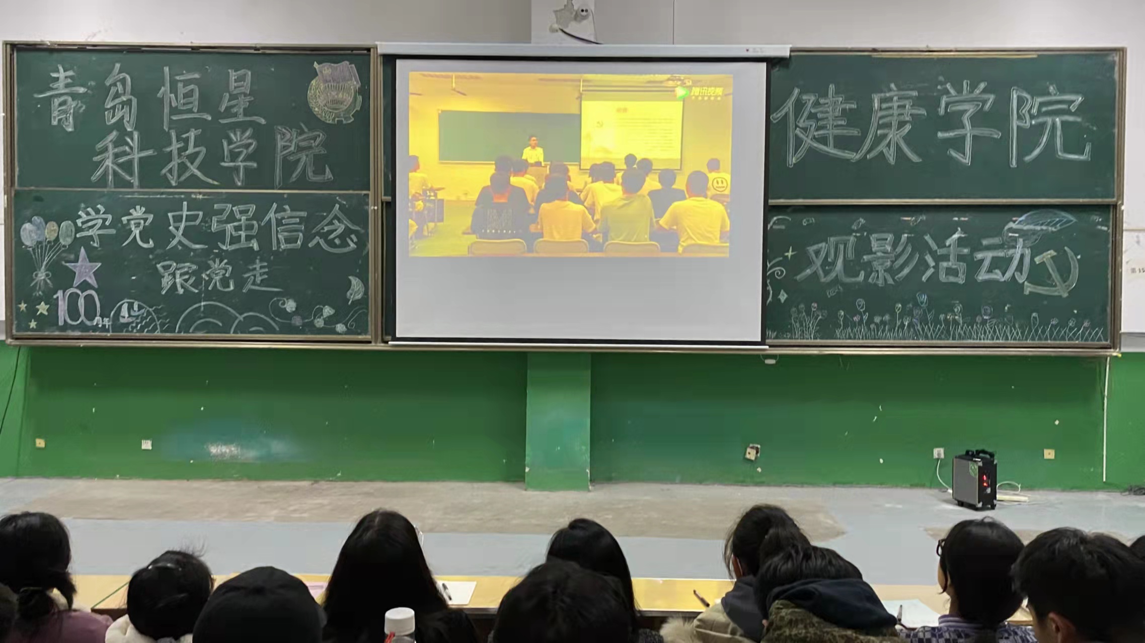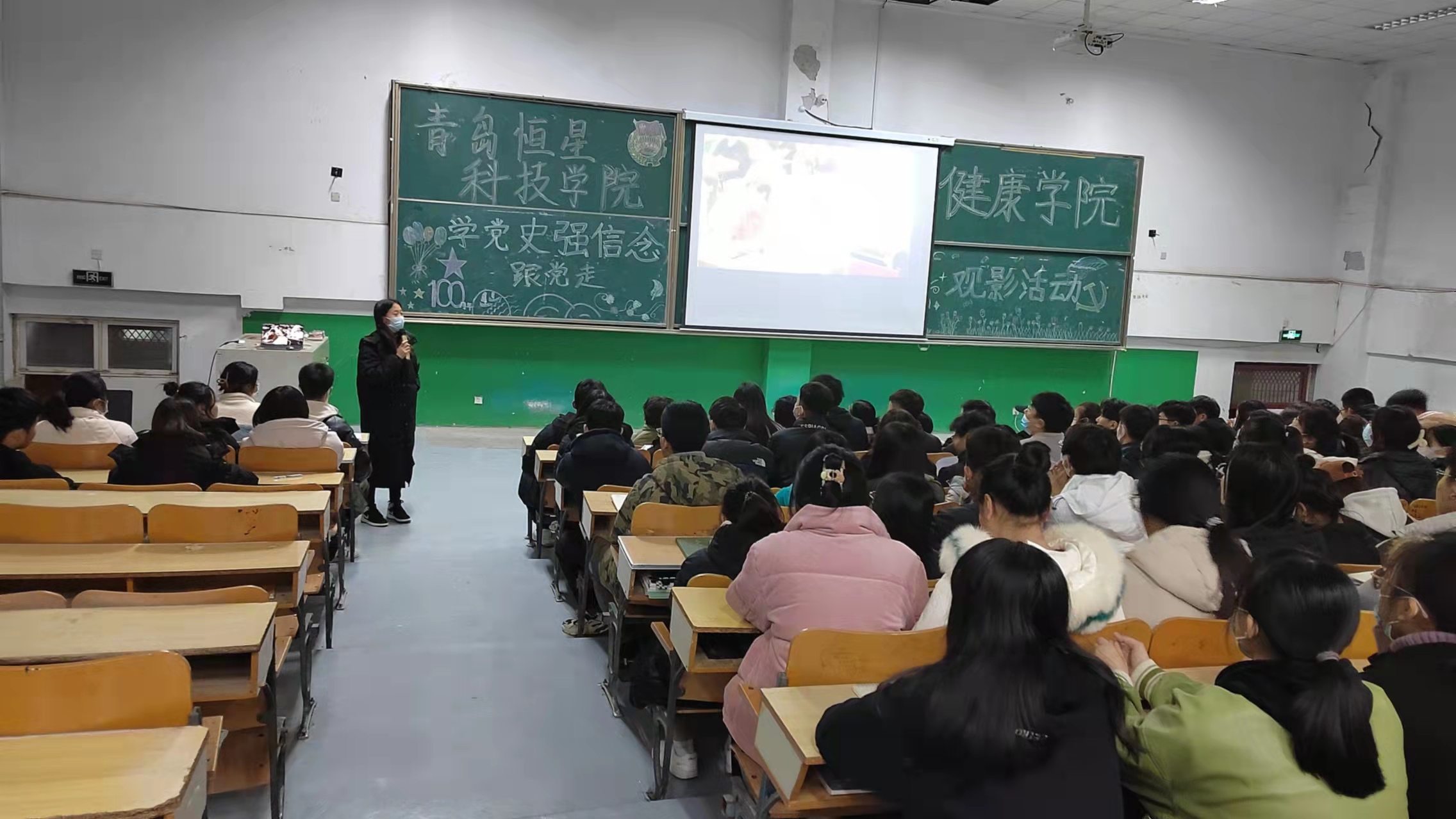 为深入学习贯彻党史学习教育,强化青年思想政治素质,引导团员进一步坚定跟党走中国特色主义社会道路的信念,成长为中国特色社会主义事业的建设者和接班人。青岛恒星科技学院健康学院于2021年12月7日在传习楼A8-510举行“学党史、强信念、跟党走”主题观影活动。