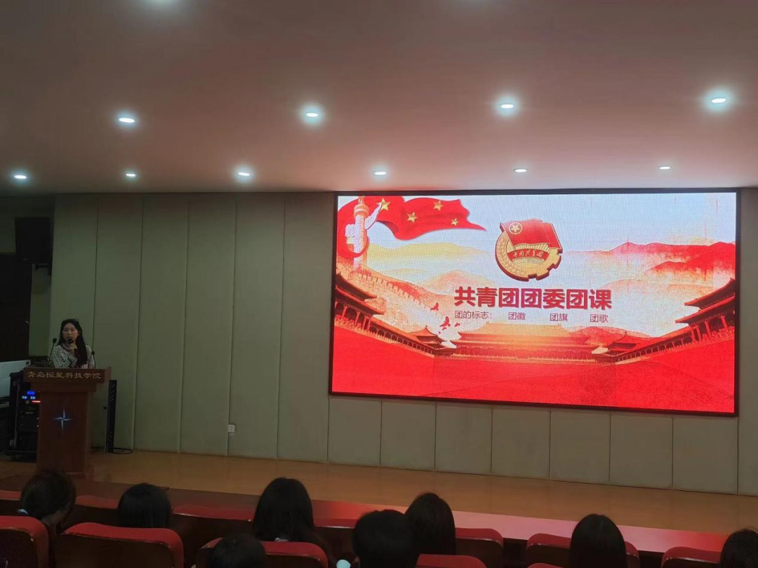 之后,辅导员李米为大家讲解了团的标志——团徽、团旗,团歌。为我们分别讲述了团徽、团旗,团歌的由来与意义以及中国共青团的性质、地位和任务。