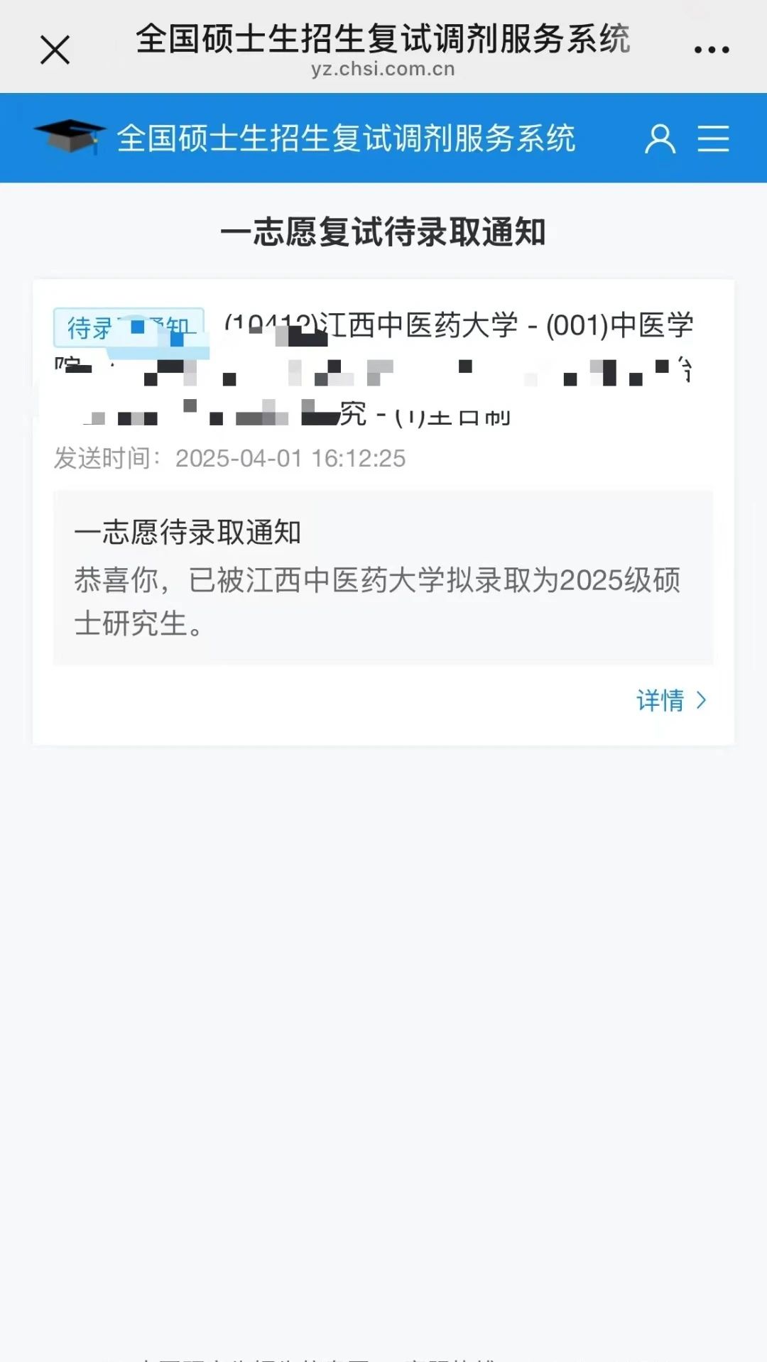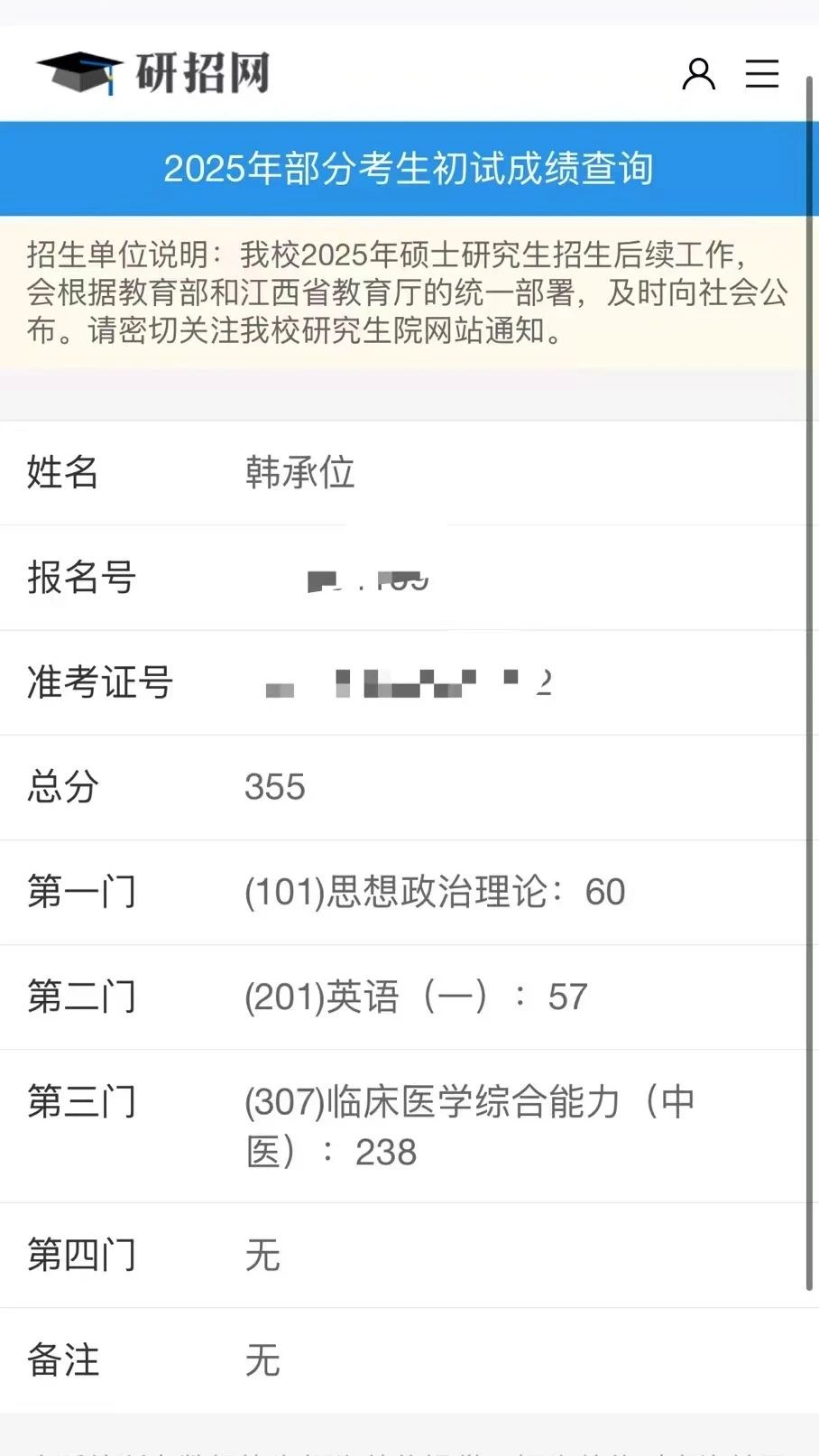 无论是英语政治等公共课,还是难度重重的跨考专业课,他始终直面自身短板,稳扎稳打。无数个挑灯夜战的日子里,他将康复专业知识与中医理论巧妙融合,跨越学科鸿沟。凭借这份执着与智慧,韩承位最终以初试、复试双第一的优异成绩,被江西中医药大学中医专业录取,在考研之路上绽放出属于自己的耀眼光芒,书写了一段令人赞叹的跨考传奇。