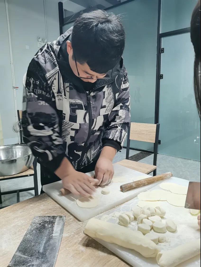 别看包饺子手法简单,却也是门技术活,不少同学手法还不熟练,但在老师的悉心指导下,同学们渐入佳境,乐在其中。