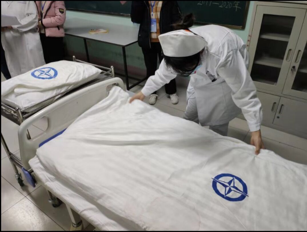 在心肺复苏比赛进行的同时,铺床比赛的选手早已跃跃欲试。铺床也是作为一名护士的重要工作之一,把床整理的整洁干净是对病人的尊重。选手们有条不紊的进行着,处理好边边角角,力争将床铺做到标准。经过指导老师的观察,最终朱正佳同学荣获一等奖,朱鹏霜、毛凯旋获得二等奖,张楠、孙哲、姜萌月同学获得三等奖,成为此次项目比赛中的佼佼者。