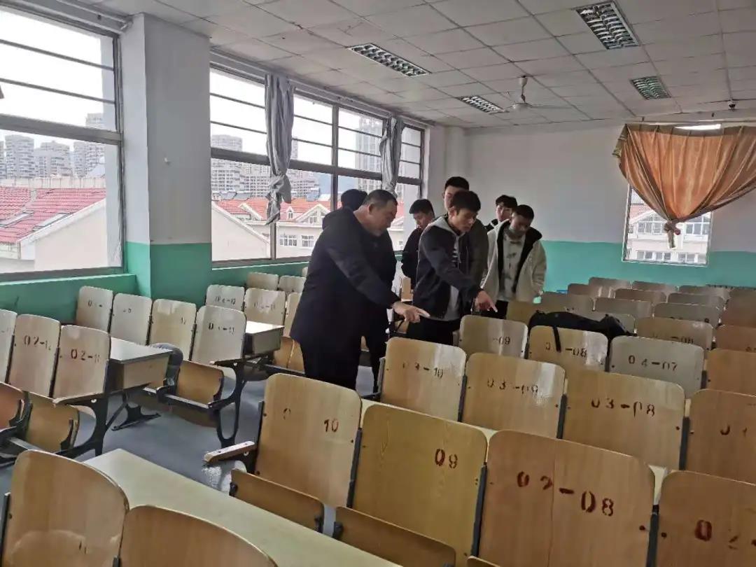 钱同新院长在卫生清扫期间,针对各个班级的卫生工作做出相应指导。