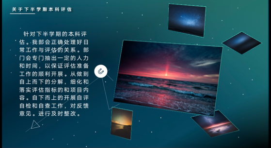 其次发言的是外联主席李文佳,引出了新学期的工作目标:外联部积极参加与各商家的赞助合作为院活动提高资金支持。实践部将调整好工作与评估的关系以保证评估准备工作的顺利开展。提出大家能继续保持这样高度的工作热情的建议,鼓励大家再接再厉。