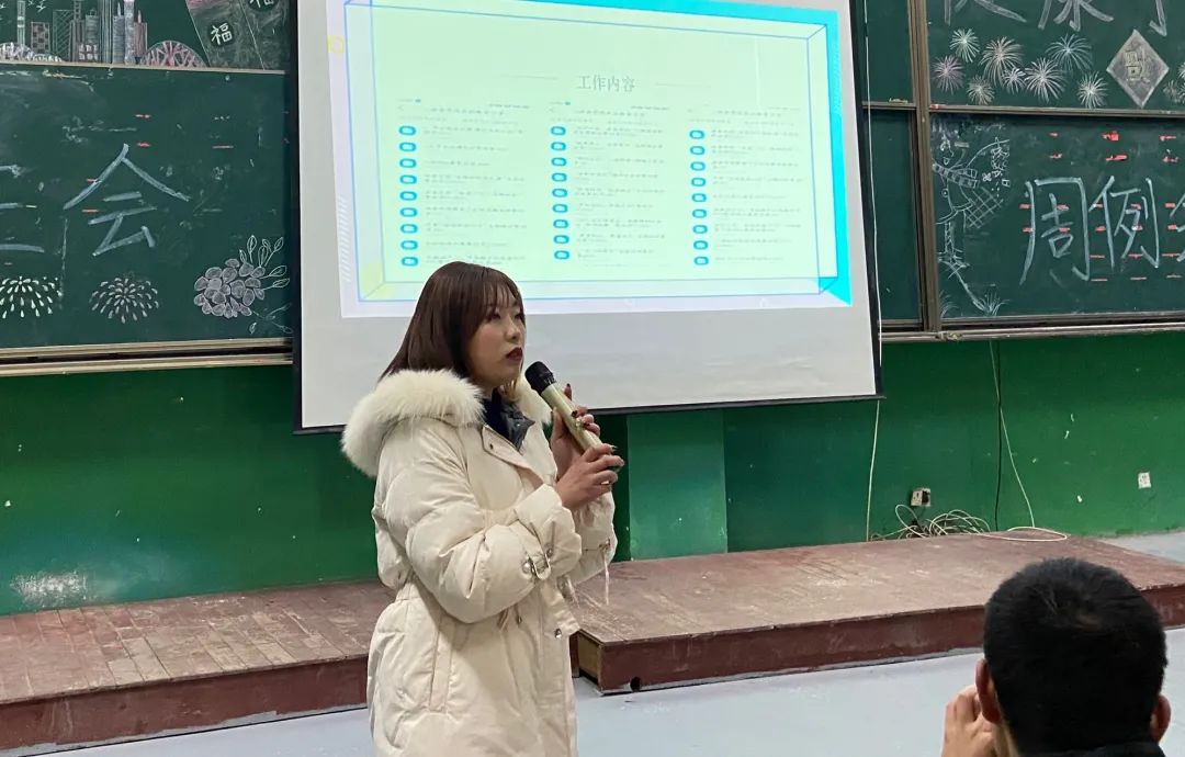 接下来是团学主席李政,总结了上学期各个部门的工作内容,支持“以老带新”,带领全部团学成员做好各项活动工作,完善自身建设,寻找自身发展的平衡点。