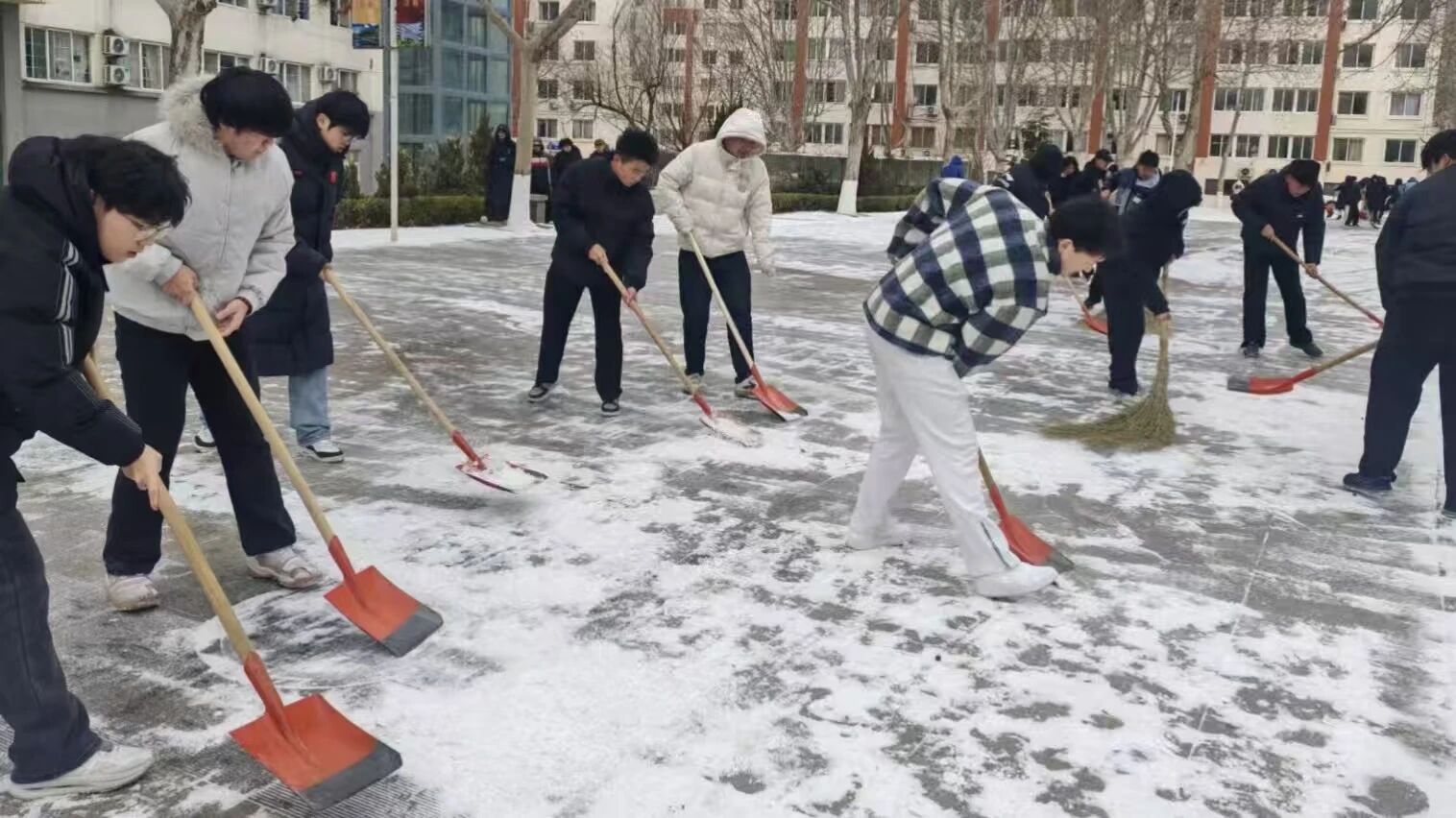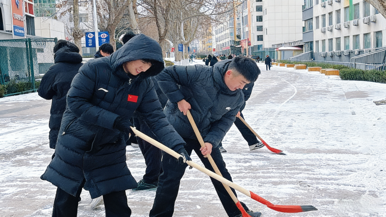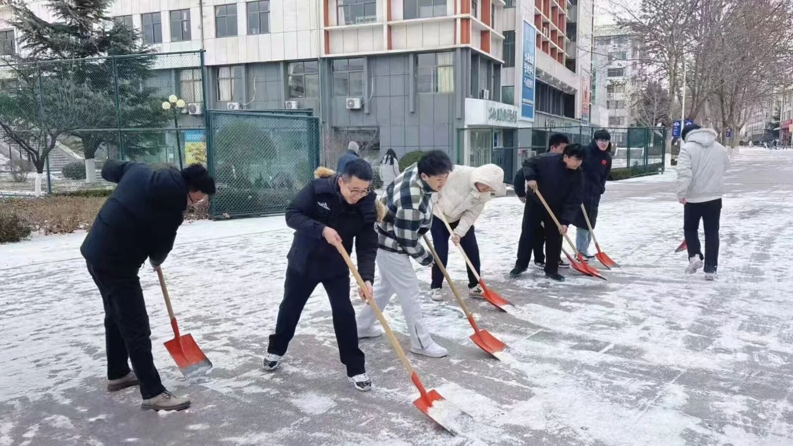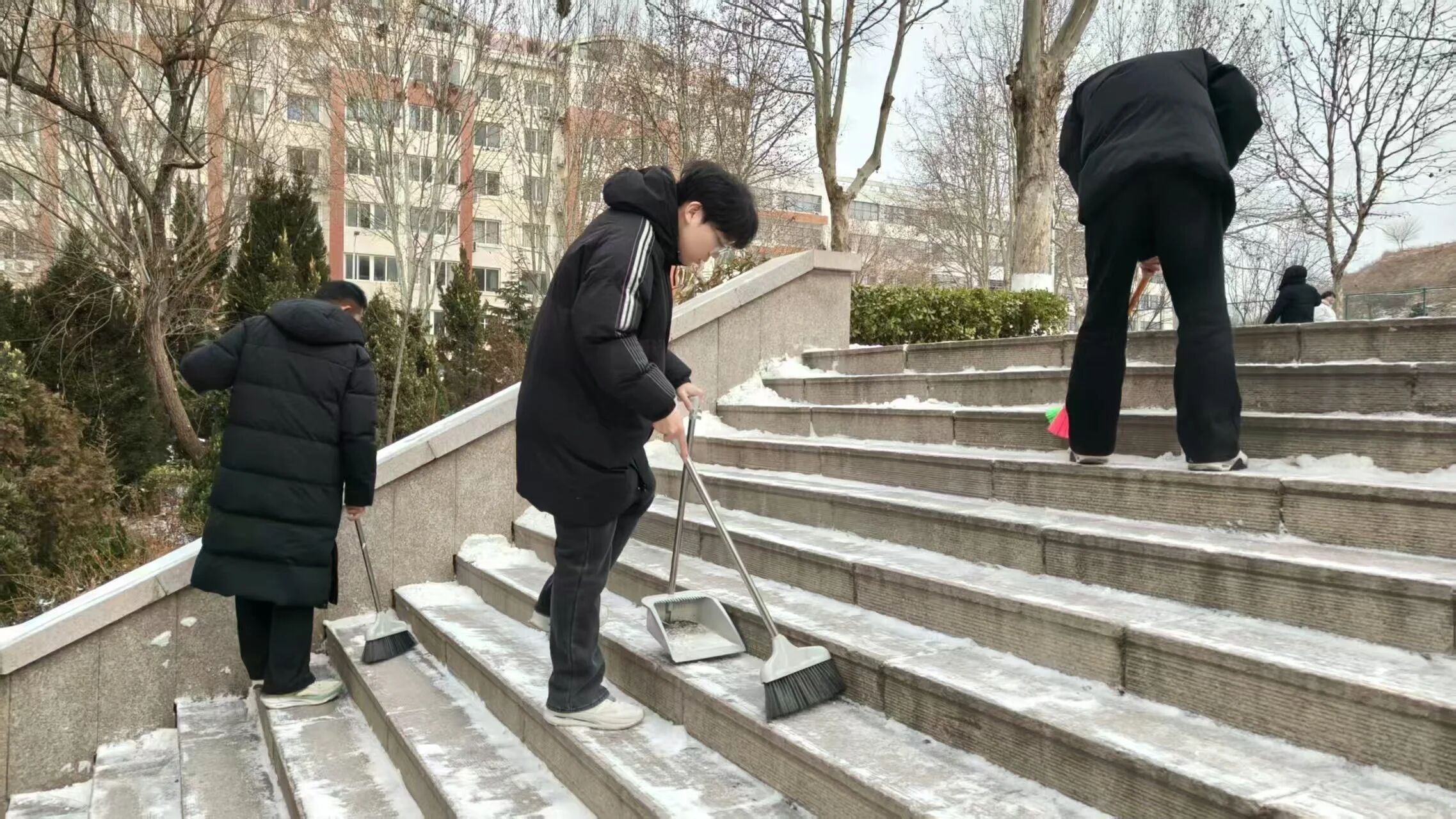 瑞雪纷飞迎新春,温情扫雪暖校园。近日,寒潮来袭,校园内积雪堆积,给留校师生的出行安全带来诸多不便。2026年1月19日,我院集中开展B5宿舍楼前扫雪除冰工作,用实际行动诠释青年担当,为冬日校园增添了一抹温暖亮色。