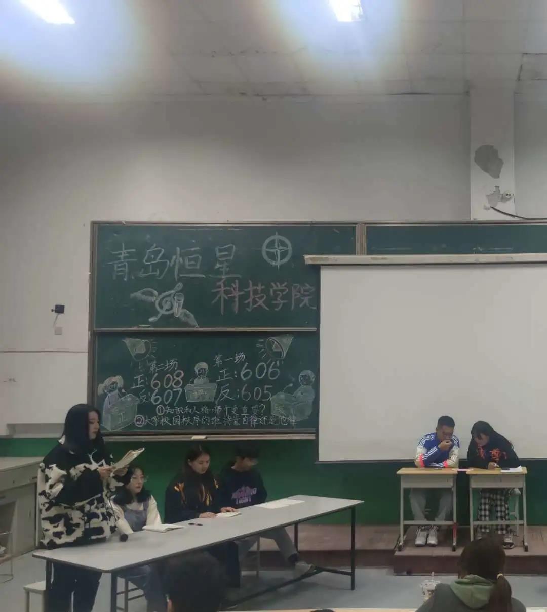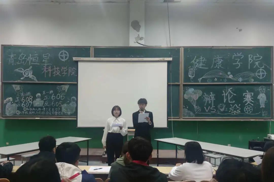 上传时间:为培养青年学生的人文素质和思辨能力,营造良好的校园环境,2020年11月3号晚7:00,青岛恒星科技学院健康学院A8育才楼510教室举办以“守安全底线 树文明新风”为主题的辩论赛。辅导员邢艳云老师、部分健康学院学生会代表参加了本次活动。