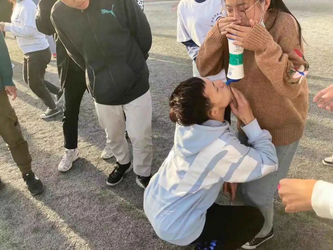 学生会与班委们之间进行了游戏大比拼,有赢必有输,他们说到做到,接受了游戏的惩罚。给大家树立了承担责任的榜样!