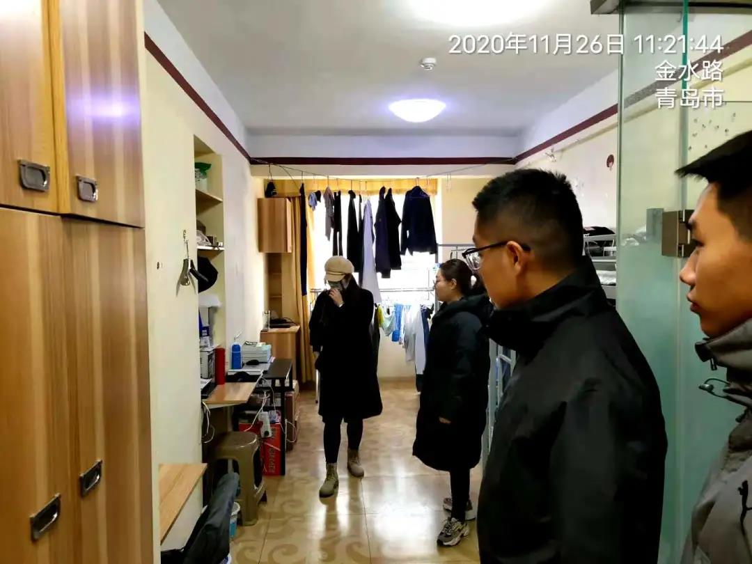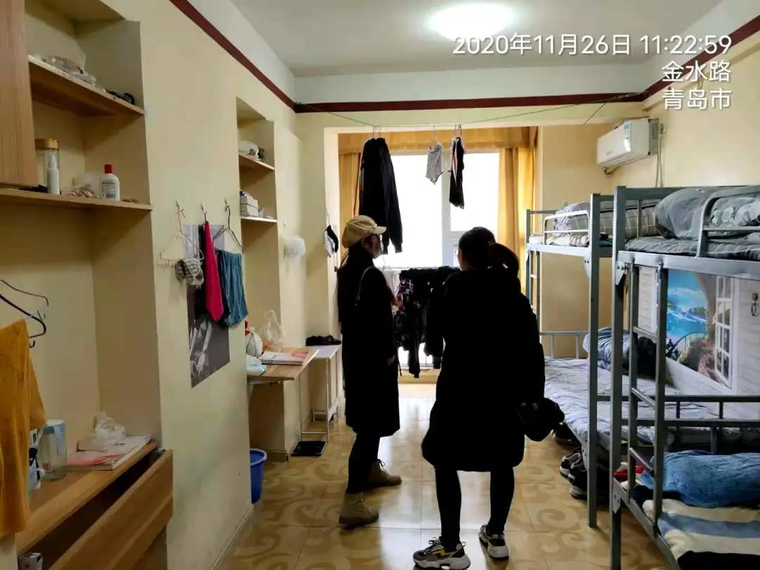 11月26日思政院长钱同新、辅导员刘笑君、辛宁、邢艳云检查G2、G4公寓楼宿舍卫生。