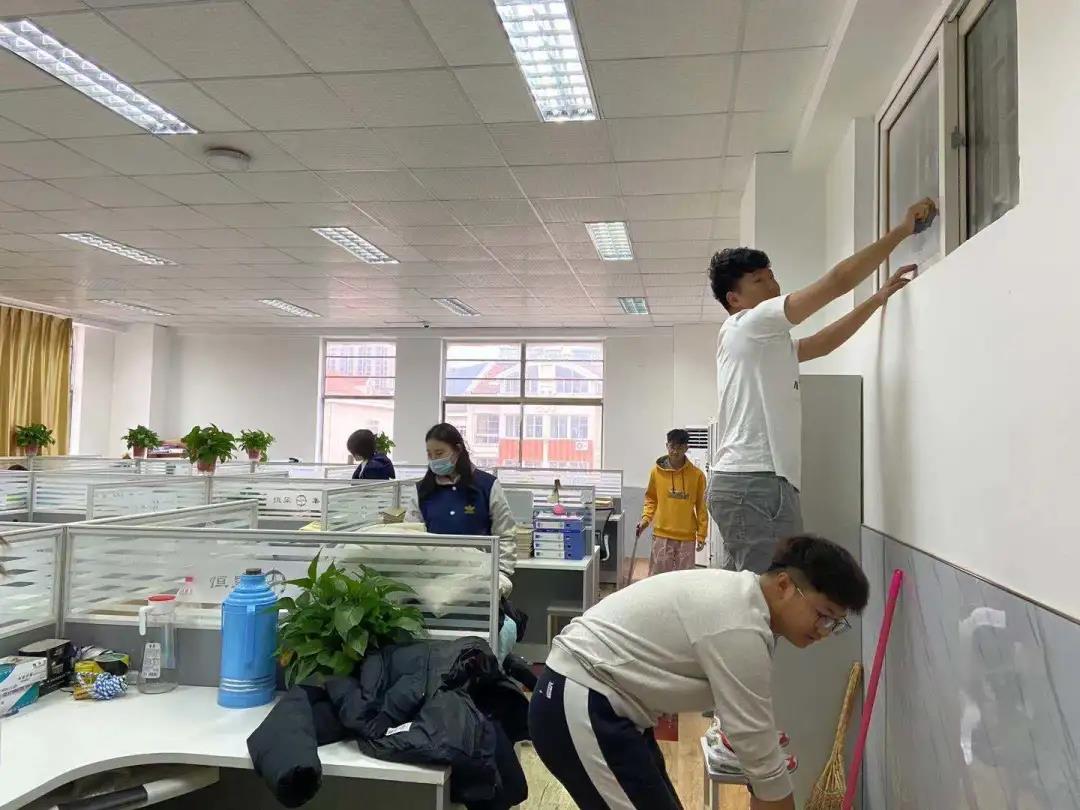 健康学院学生中午及晚自习放学后打扫A8育才楼501、502办公室