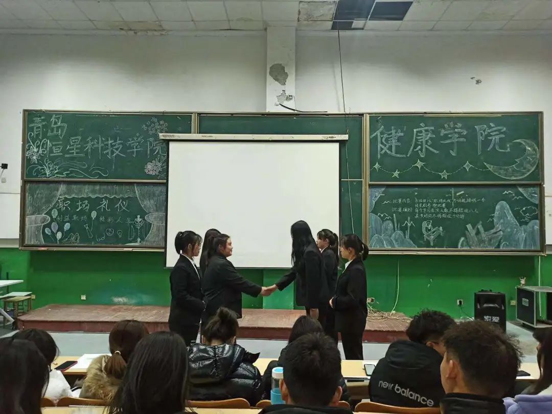 为增强当代大学生对职场礼仪的认识,掌握更多的礼仪知识,展现个人风采,提升个人素质,为进入职场打下坚实的基础。2020年12月15日晚19:00,青岛恒星科技学院健康学院于育才楼A8-510教室举行了职场礼仪情景剧大赛。各参赛小组着装整齐,步调协调,礼仪规范,秉承内容得体,礼仪表达到位的理念,生动鲜明地向大家演绎了职场礼仪的重要性。